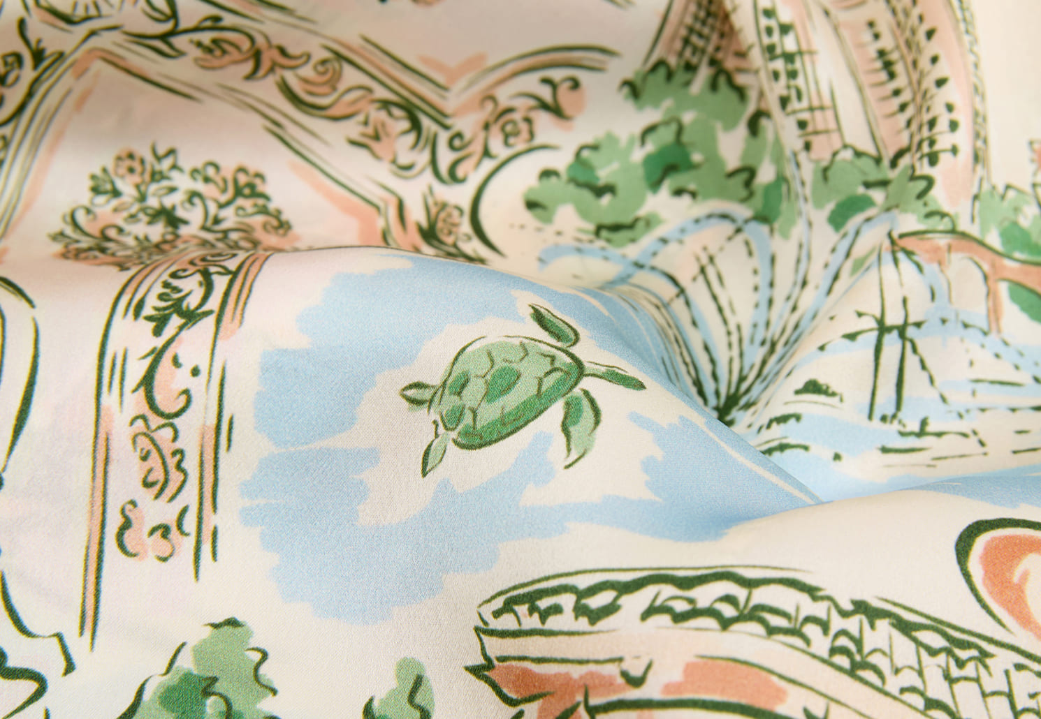 Screen-printed on the world’s finest 19-momme silk, this exclusive collection is designed to evoke the quiet elegance of a weekend well spent at Rosewood Mansion on Turtle Creek.