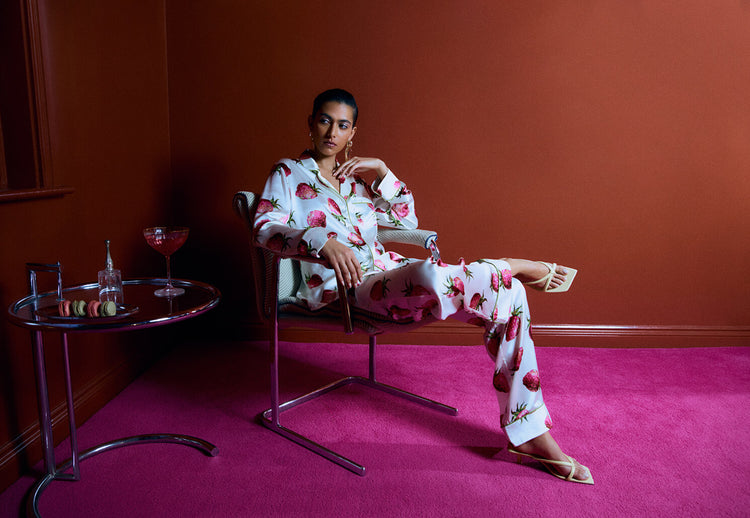 Lila Brigham Black Strawberry Pyjamasin Silk Satin