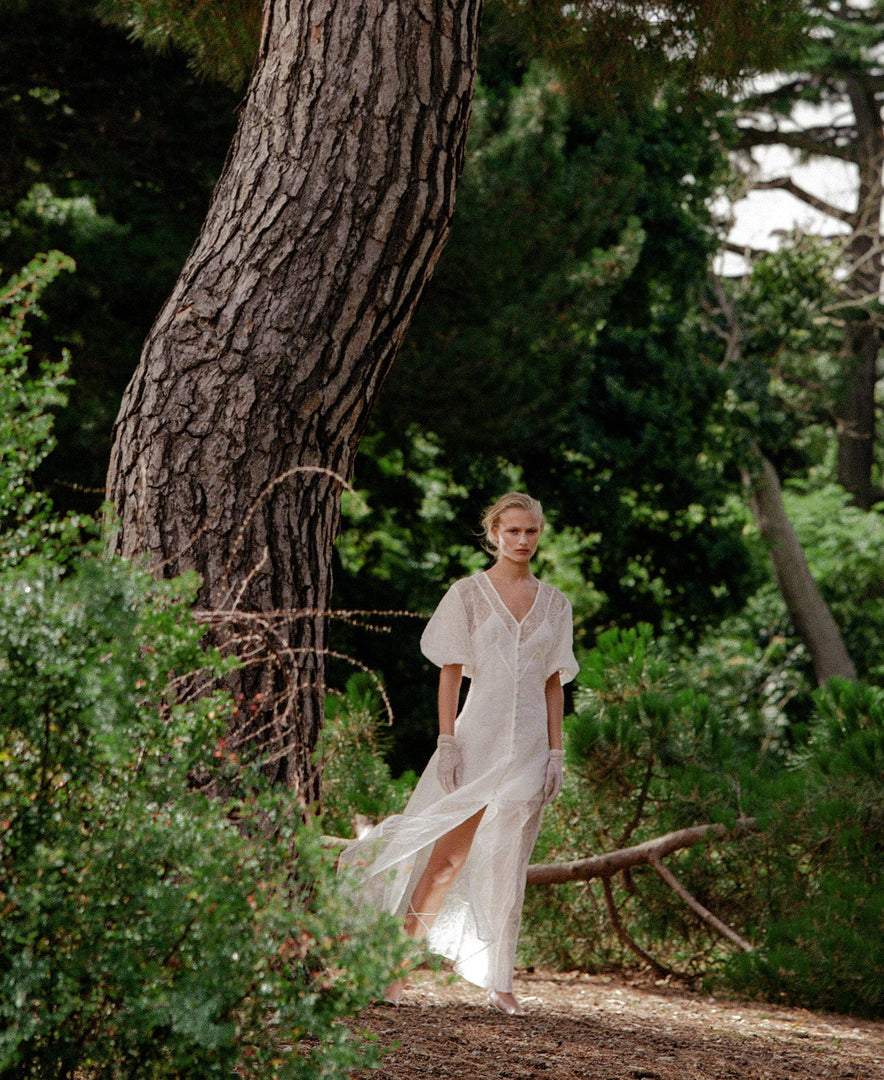A formidable clique invades an abandoned sky ranch high in the Hollywood Hills. They are at once futuristic and nostalgic. And they’re wearing silk. This season, Olivia von Halle takes a trip through time, drawing inspiration from futurism and the 1980s to create a collection that is deliciously subversive as pop culture references are tantalizingly juxtaposed to Olivia von Halle’s quintessentially luxe aesthetic.