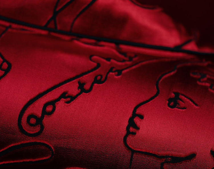 Each piece arrives beautifully wrapped in co-branded tissue paper and encased in a limited-edition red box featuring the bespoke print.