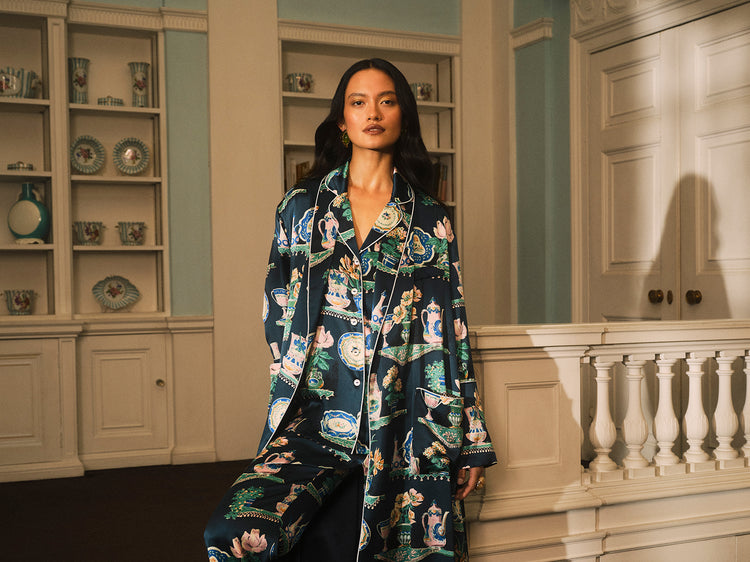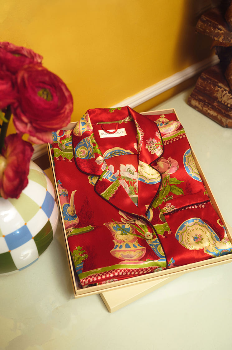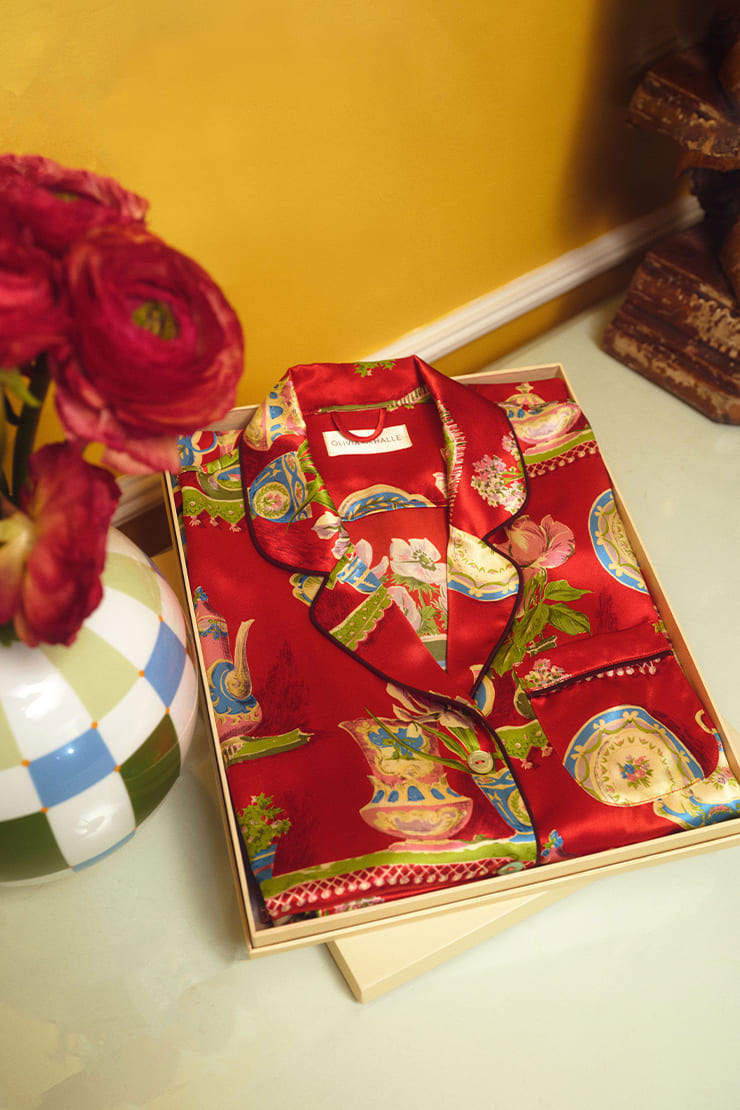 Yves Palazzo Burgundy Polka Dot Pajamasin Silk Twill