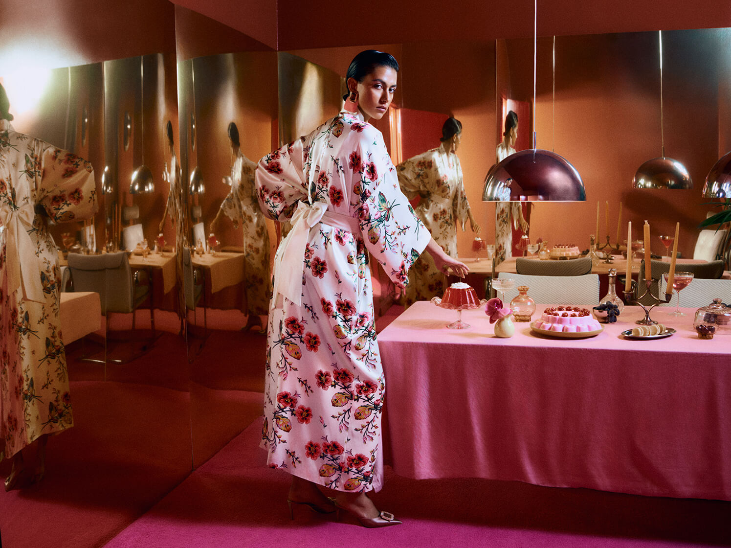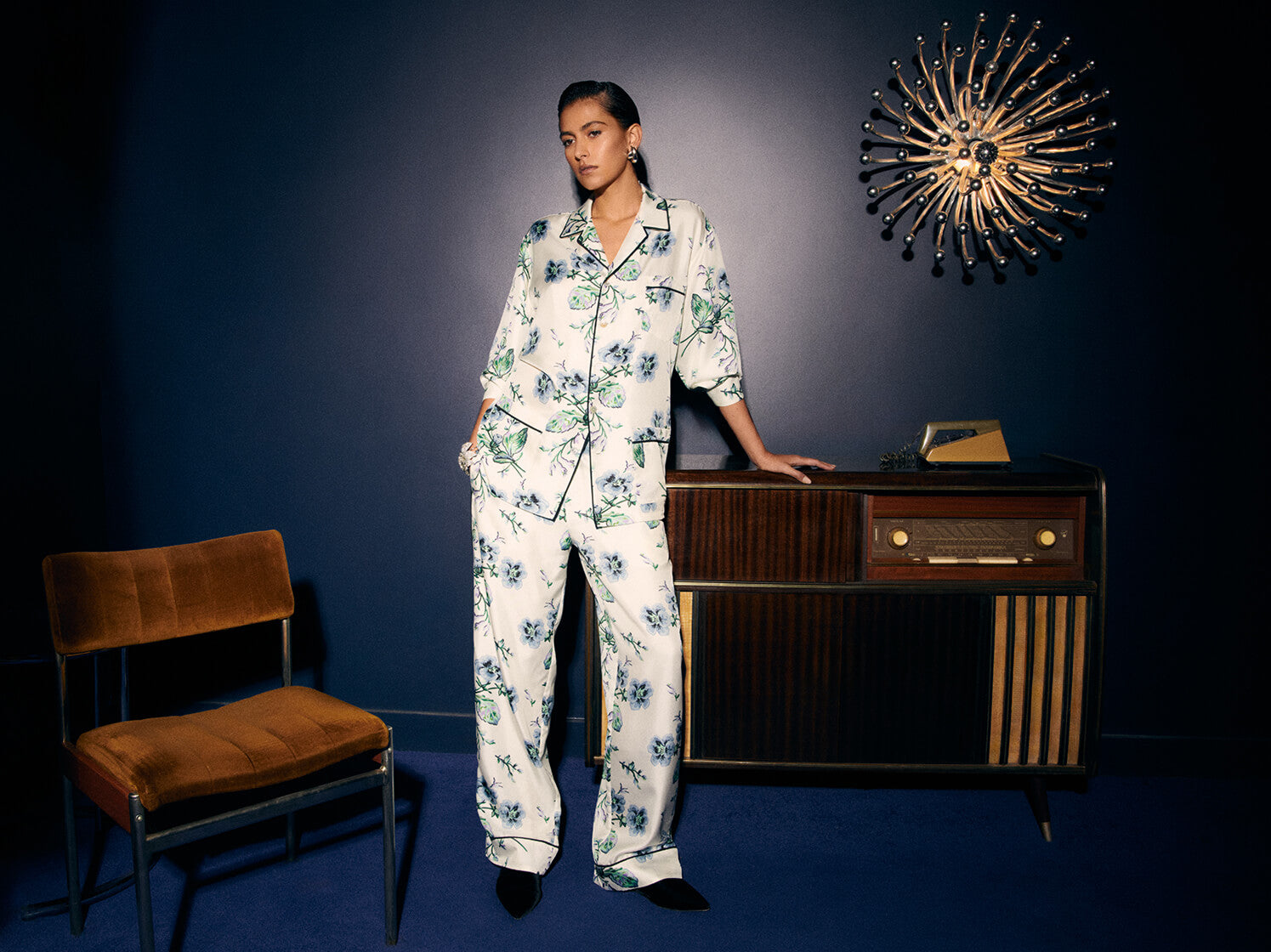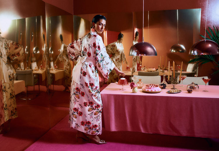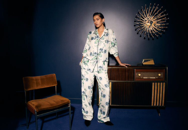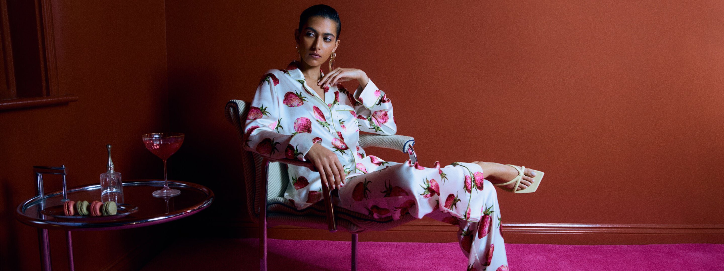 Lila Brigham Black Strawberry Pajamasin Silk Satin