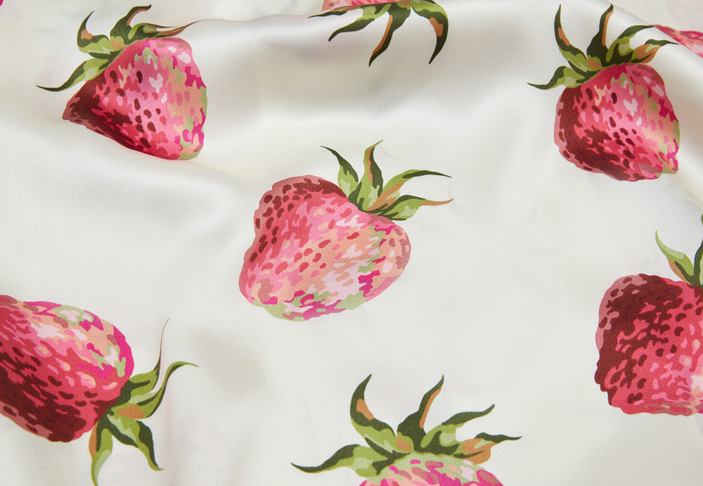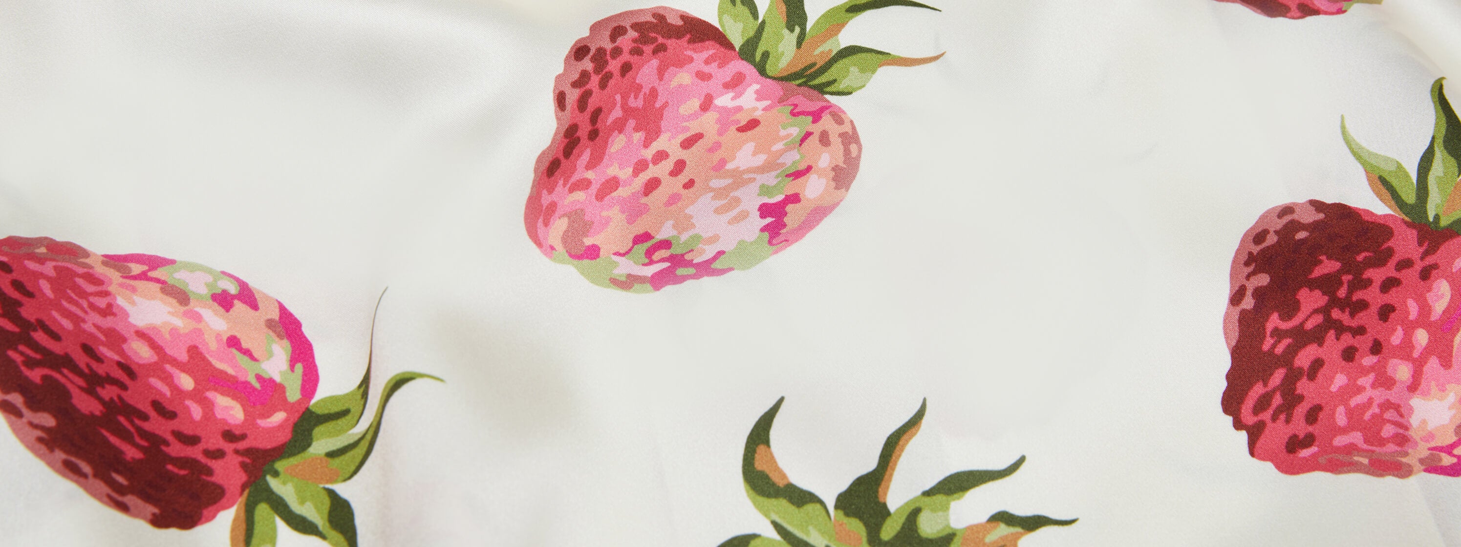 Our collections may be spun from seriously luxe fabrics, but we’ve always adored a dash of whimsy at Olivia von Halle. Case in point: the supersized strawberry screen-prints that are dotted throughout our SS25 collection. Inspired by lavish dinner parties and aristocratic country gardens, our Blythe and Bingham look just as ravishing against a manor-house backdrop as they do in more modern, metropolitan settings. Find them atop our robes, pyjamas and slip dresses this season in the most scrumptious 19-momme silk.