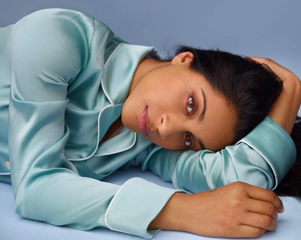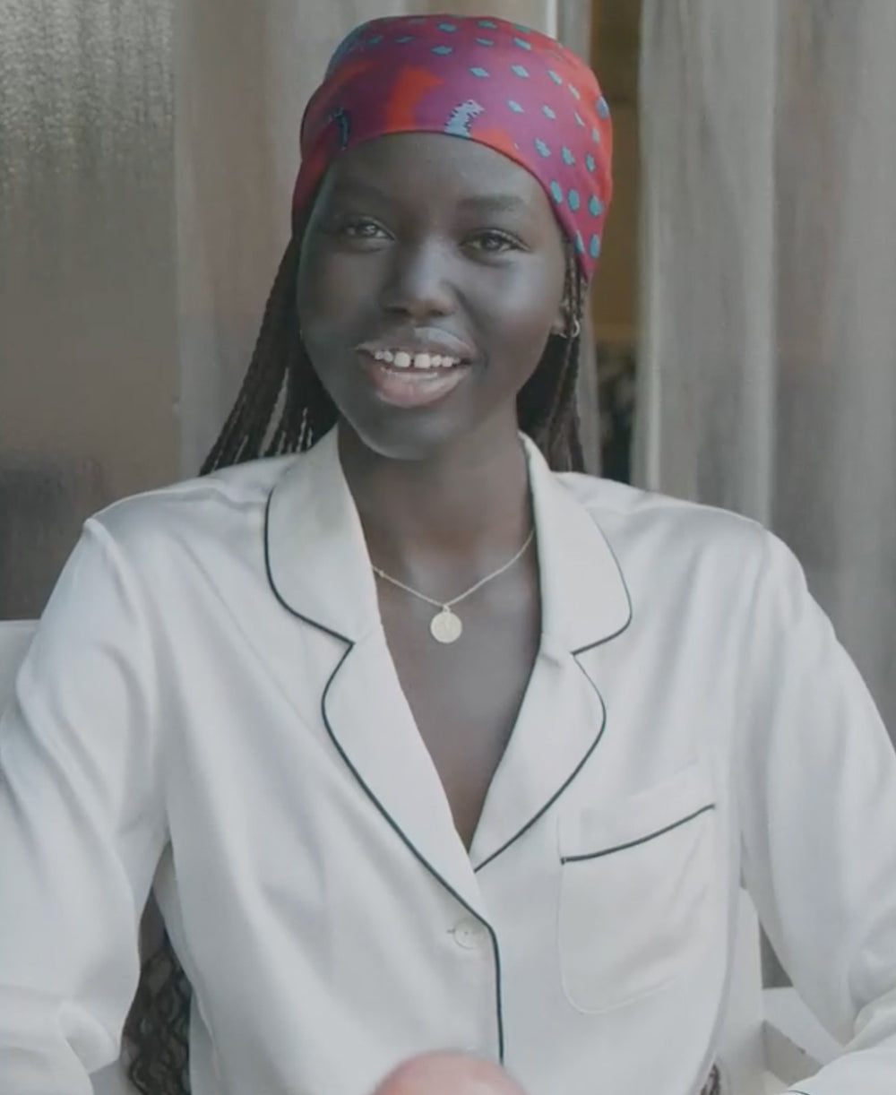 Adwoa Aboah’s iconic shoots and activist work have cemented her status as one of this generation’s new vanguard of supermodels. Her understated chic has spawned a new generation of fans; she travels the OvH way in the Coco Ivory. A lesson in silk tailoring, the Coco Ivory silk pyjama set draws from Coco Chanel’s habit of wearing her lover’s pyjamas to bed. Ivory is a neat contrast to jet-black piping, in an androgynous style that errs to the feminine. Able to be monogrammed for bespoke pyjamas as a lifelong gift for special someones.