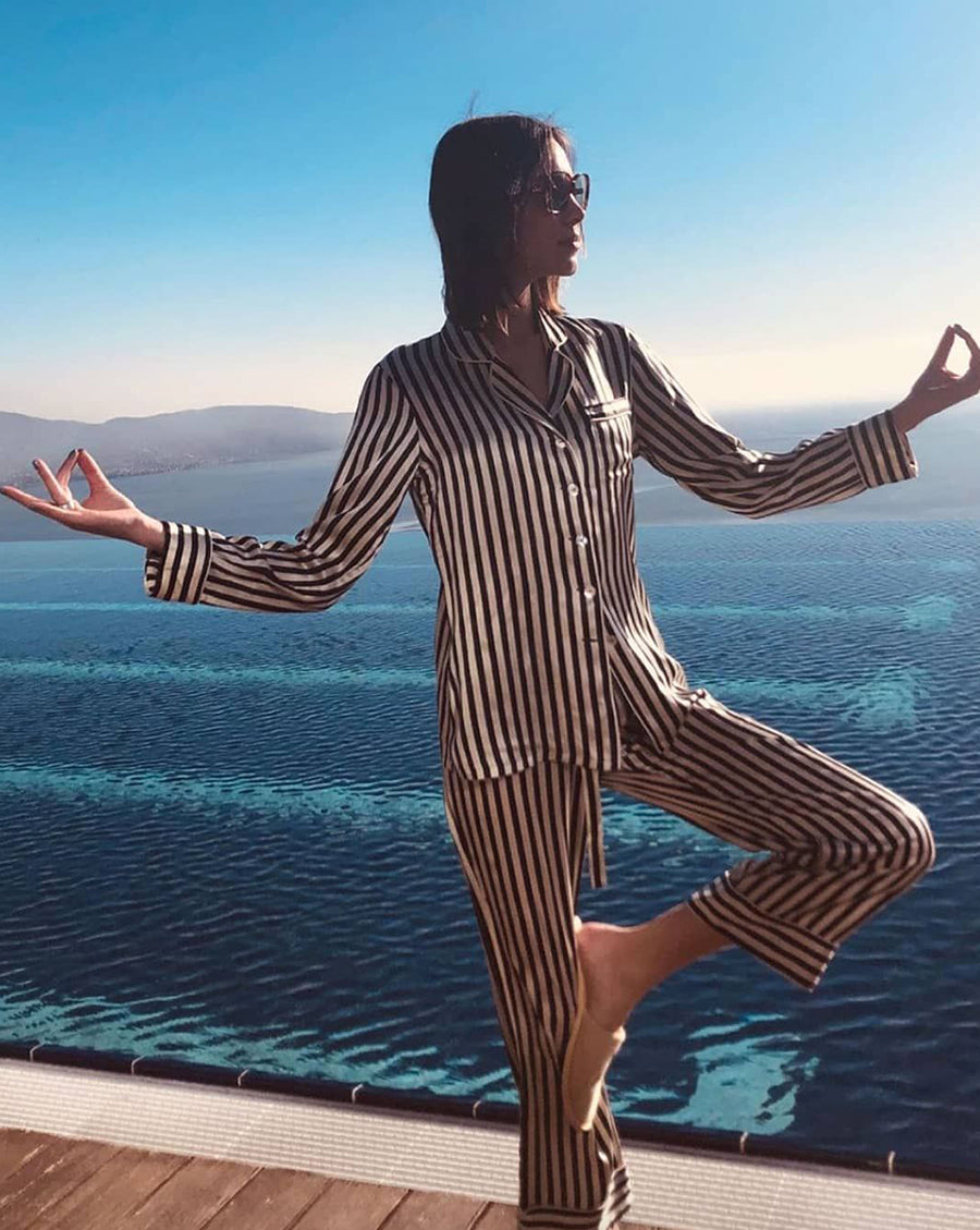 Lila meets Laura, in this classic pairing of the Olivia von Halle bestselling Lila Nika striped silk pyjama set. Find out for yourself why Laura and many more love the Lila look so much.