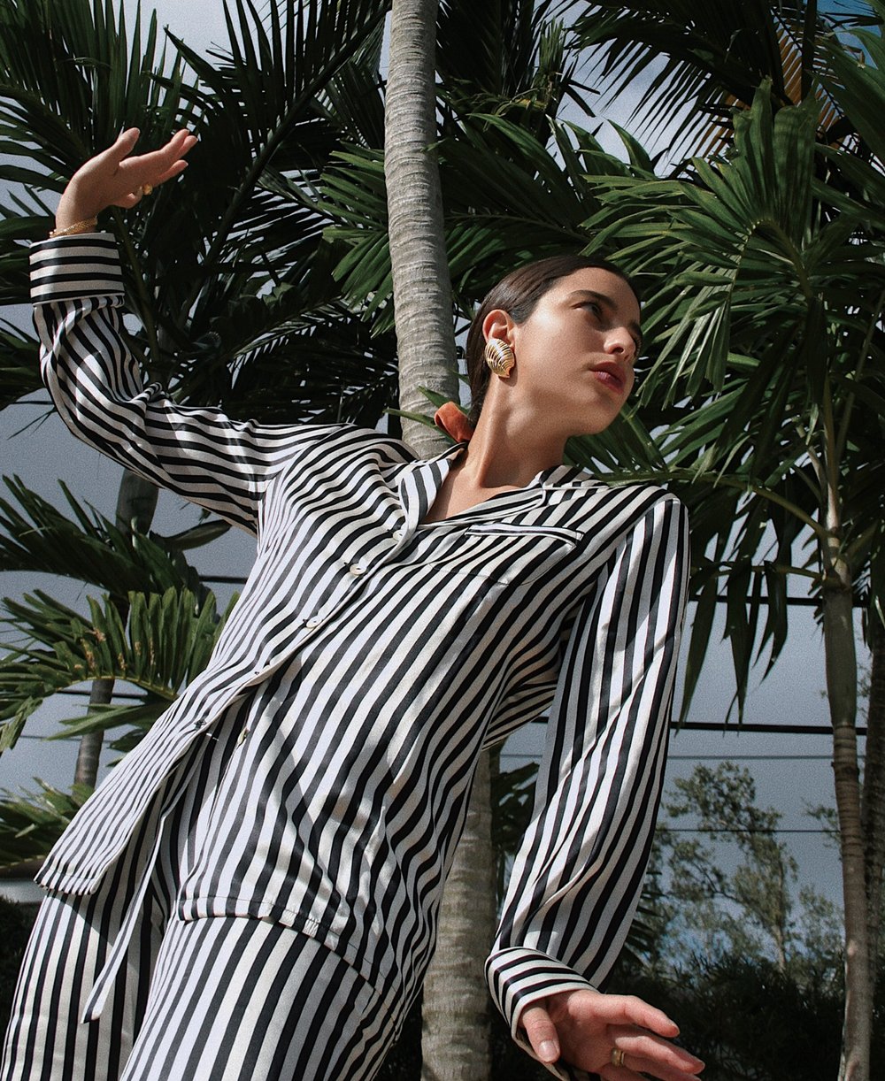 The distinctive seduction of an OvH look at NYFW is a surefire way of standing out amid the crowd. For a supermodel like Joan Smalls, you need luxury on another level—the Alba Calvin is it. The Alba silk pyjama set takes its cues from the impeccable tailoring and design of London's Savile Row; as Joan Smalls shows, Alba lends itself perfectly to daywear as well as nightwear.