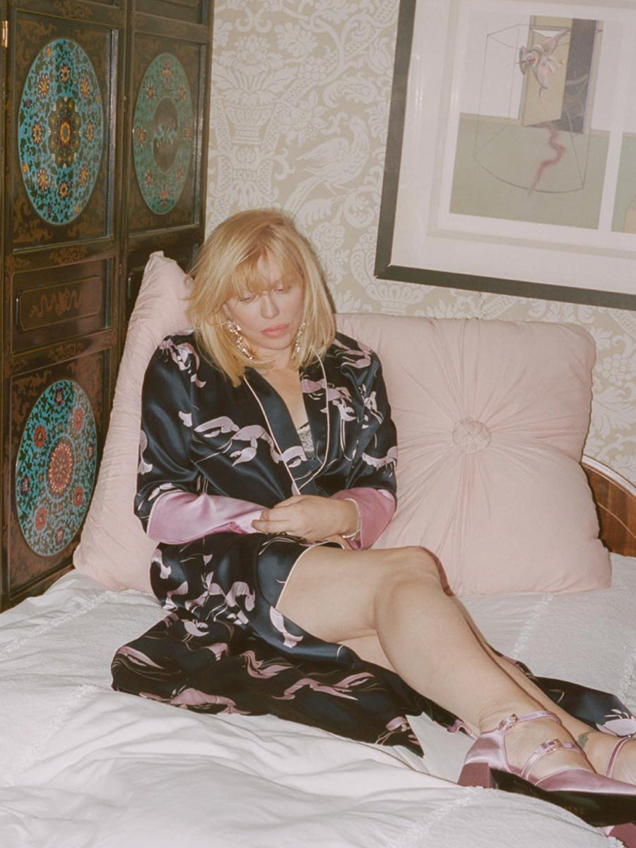 An icon like Courtney Love deserves a print just as indelible. The Capability Constance is alive with our charming lobster print, worn here by Courtney in a characteristically louche and laid back manner.