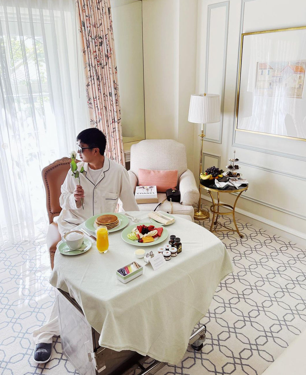 She’s a screen queen, the matriarch beyond compare, the leader of dynasties and of Hollywood legend—Michelle Yeoh brings decades of star wattage to the Coco Mamba, imbuing it with her trademark insouciant style for this Hollywood Reporter shoot. A lesson in silk tailoring, the Coco Mamba Silk Pyjama draws from Coco Chanel’s habit of wearing her lover’s pyjamas to bed. The ivory piping provides a neat contrast, and the 100% 19 momme silk is a trademark of the Olivia von Halle silk pyjama. Able to be monogrammed as a lifelong gift for special someones.