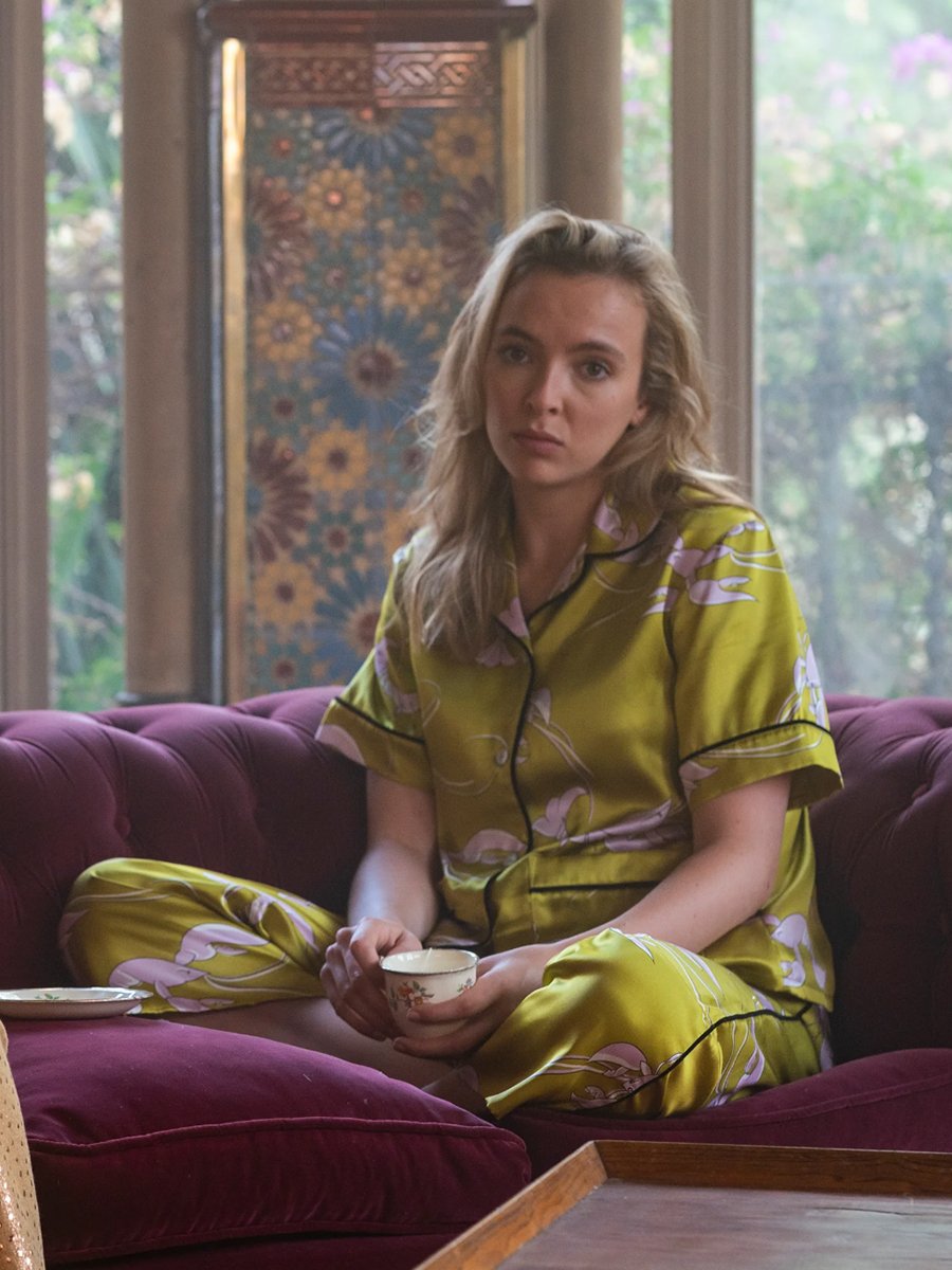 Killing Eve’s Villanelle has a wardrobe to die for. Villanelle, played by Jodie Comer, sported the Daria Cecil silk pyjama set for Killing Eve Season 3. The latest weapons in the Killing Eve killer wardrobe, Villanelle’s silk pyjama set will have you green with envy. Pair with a printed robe as you recline to watch Villanelle’s exploits in the next Killing Eve episode.