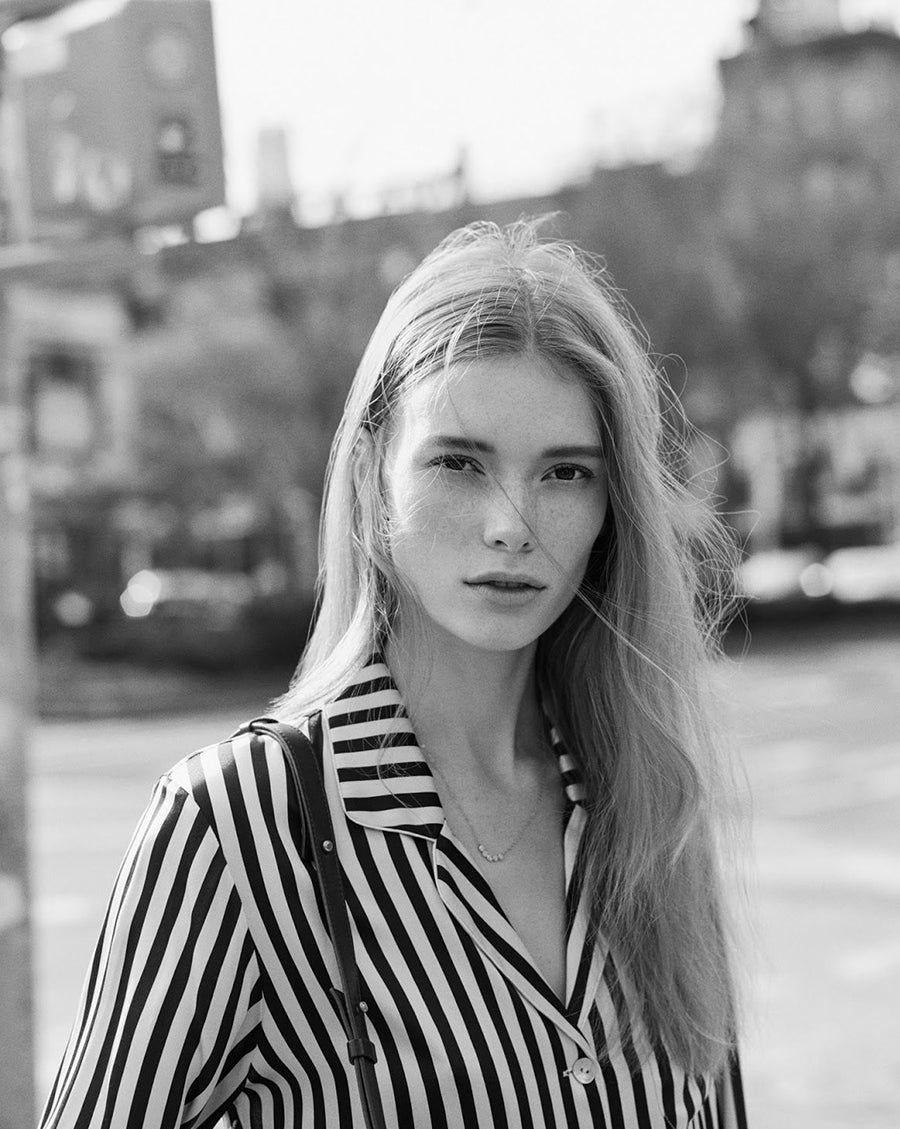 Fashion scion Cindy Crawford has it all–charmed life, charming offspring, charming Coco Ivory look. Proving at-home doesn’t have to be off-brand, Cindy channels the chic lines and luxurious drape of the Coco the best. Shot for Porter, Winter 2015.