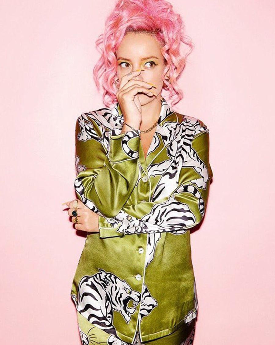 If the walls of Lily Allen’s home could speak, what would we hear? With statement pink hair, an exclusive look at the indomitable pop star in our Lila Rora pyjama set.