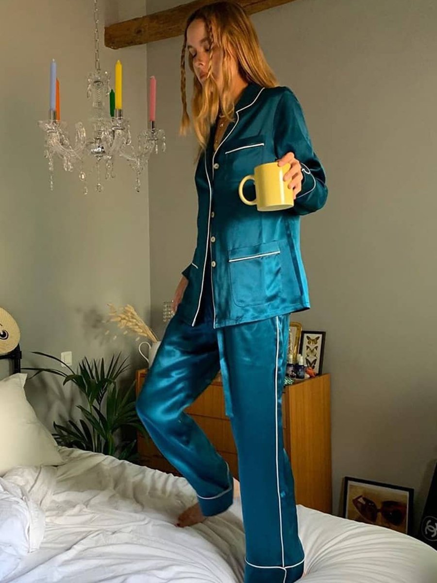 Stylist Lucia Cuesta slips into something stylish—her house, her castle.. Coco Neptune is an ode to otherworldly glamour, and this colour appears uncommonly rich on Olivia von Halle’s luscious silk fabric. Silk does for the body what diamonds do for the hand, so the saying goes. In that case, the Coco Neptune Silk Pyjama may be a sensory overload.