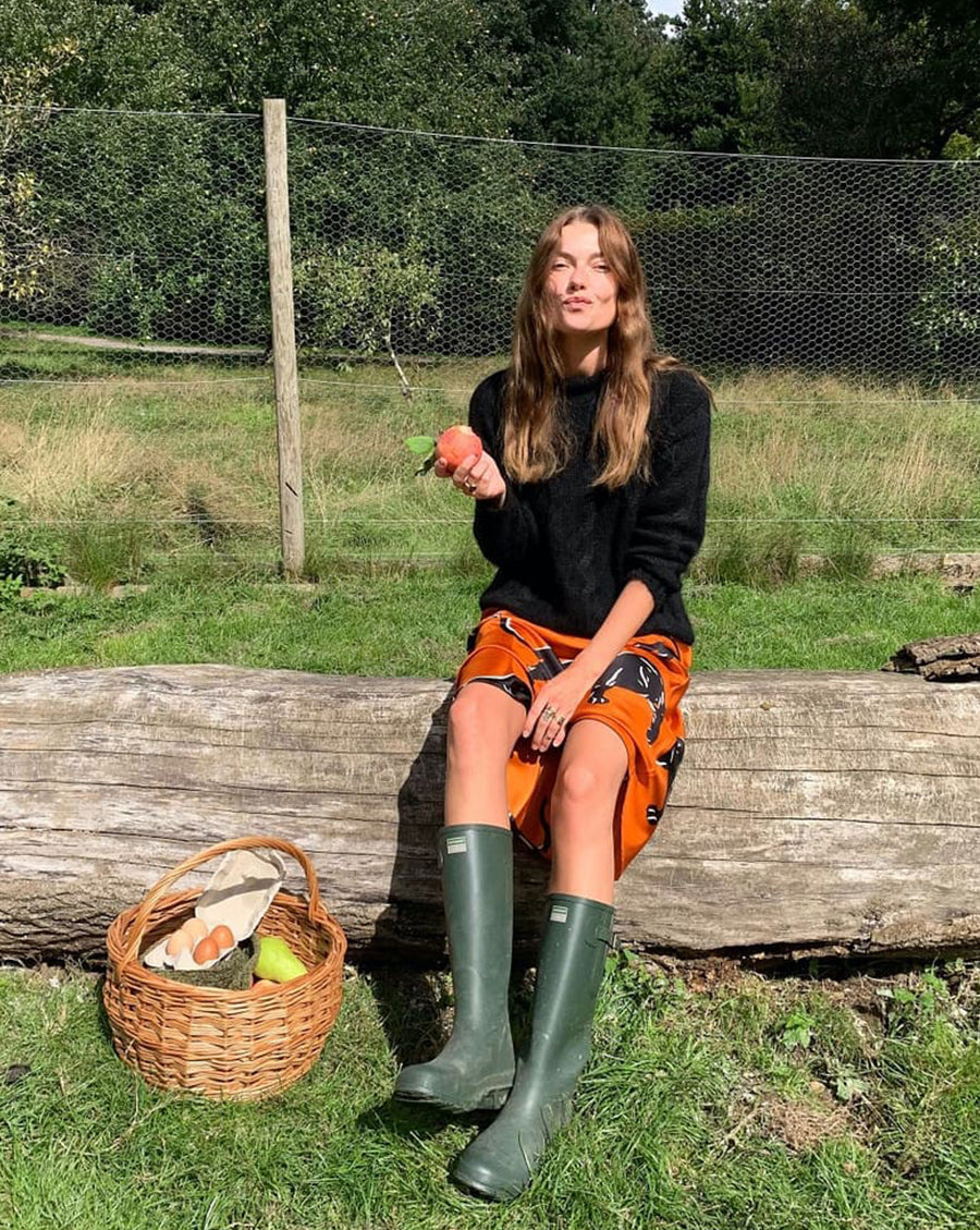 Stylist Chloe Chill prizes a technicolour wonderland and a lo-fi lens on high style. At home in our Aureta Hades, the New Zealand stylist embodies the boldness of a gestural silk print. Revel the night away in Aureta, and wake up feeling like a Queen. Effortlessly elevated—paired with stilettos for evening attire, or mules for workwear—become who you are in the iconic Aureta.