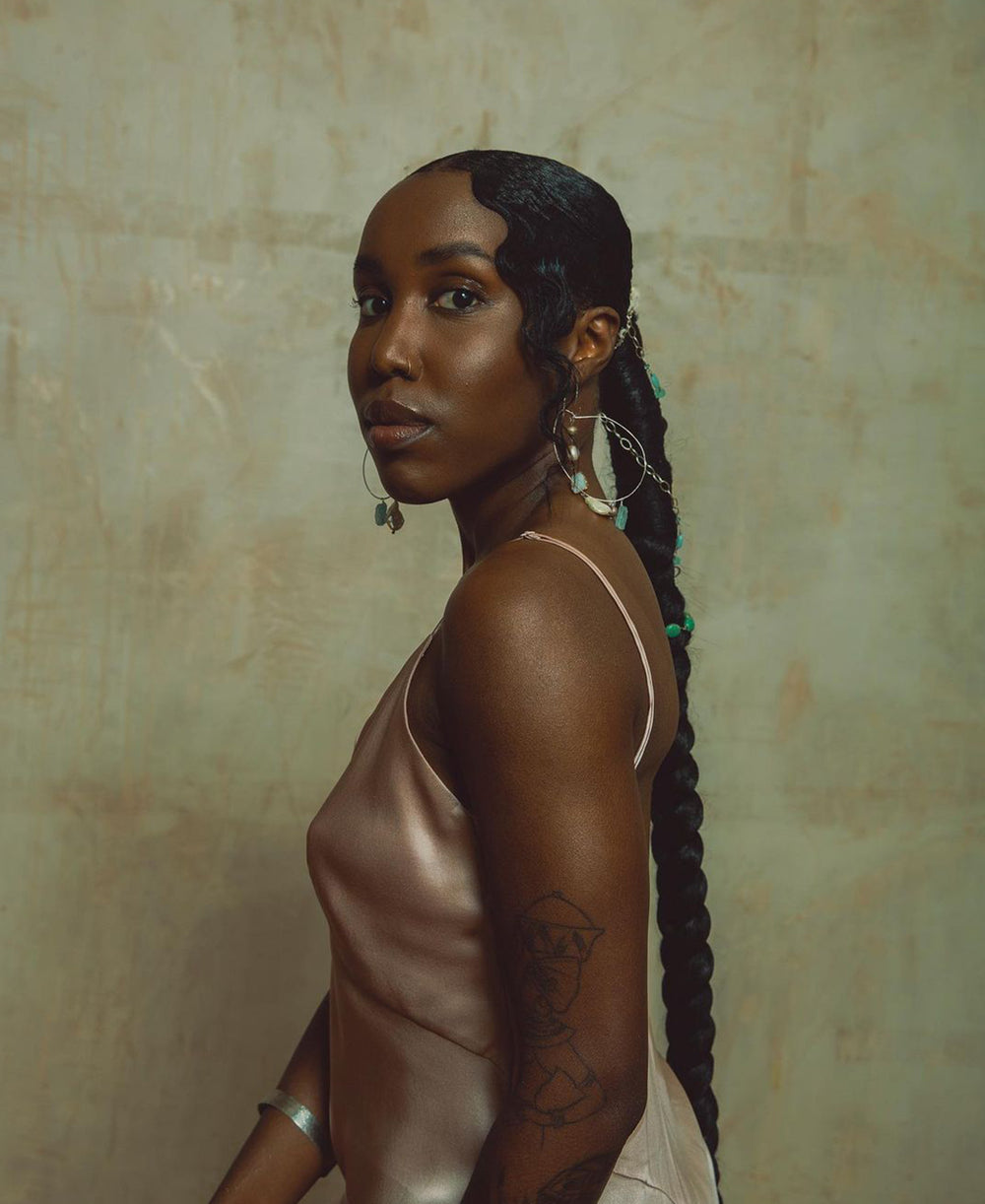 Stealing the show in this silk slip dress from The Divine Nile Collection, Emma Dabiri shows how truly versatile an OvH silk slip dress can be (and how camera-ready it always is).