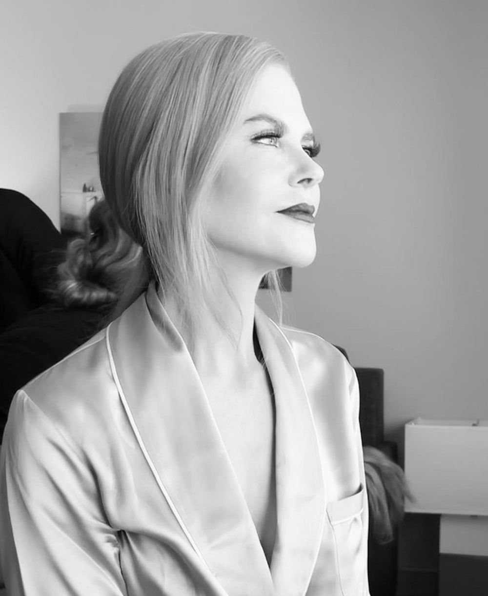 We are, to be unapologetic about it, enormous fans of Kerry Washington. Commanding the camera in her Lila Onyx, Kerry greets Good Morning America OvH-ready. Kerry dominates in our statement chic printed pyjamas. Olivia von Halle’s Lila silk pyjama draws inspiration from the opulence of luxe 1920s silk loungewear. With contrasting silk piping, and mother of pearl buttons, the Lila Onyx pyjamas are the epitome of chic.