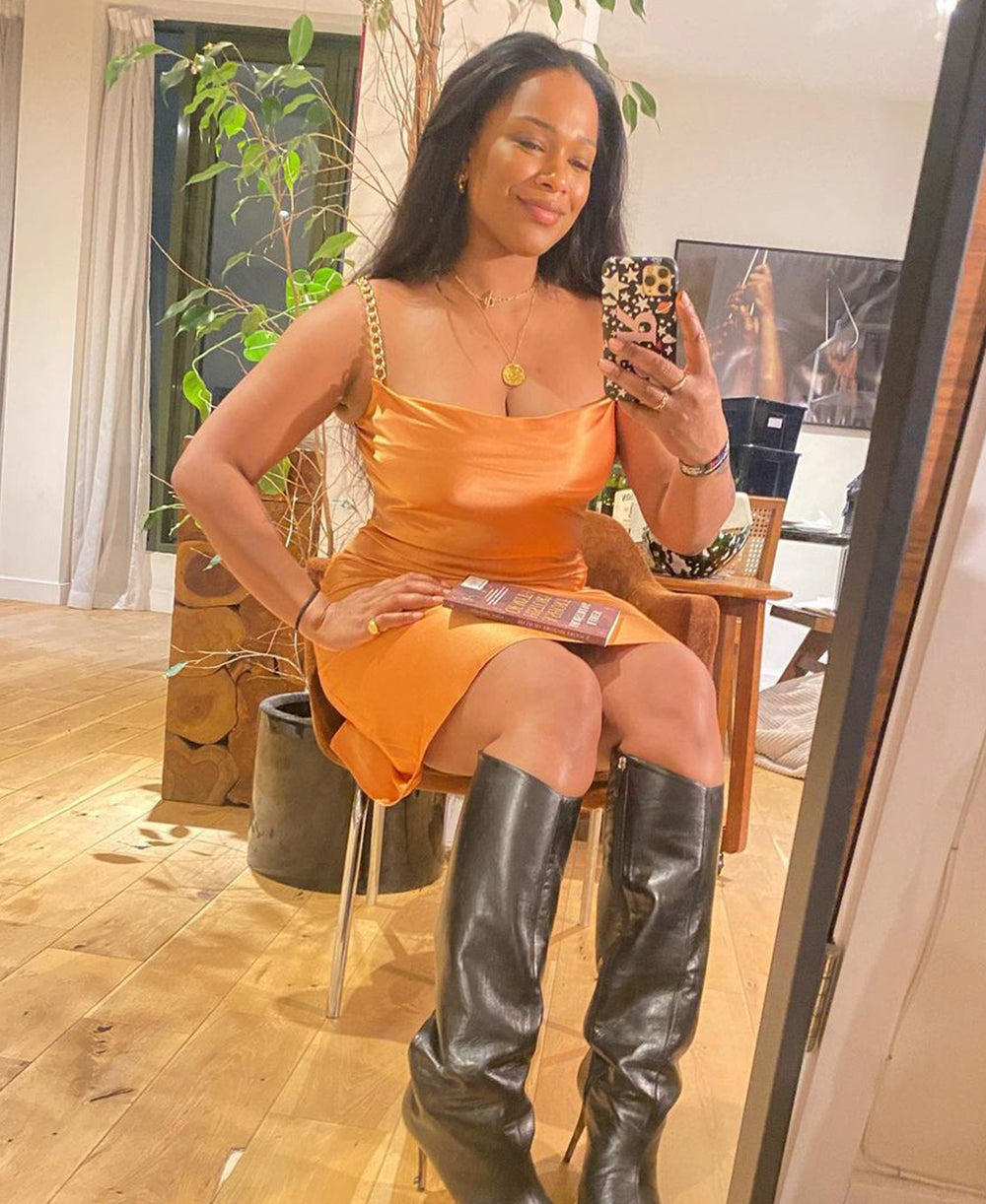 Entrepreneur Sharmadean Read made waves for pushing for diversity in VCs. She makes a new statement in her luxury Bibi Copper silk slip dress—showing how versatile the perfect slip can be.