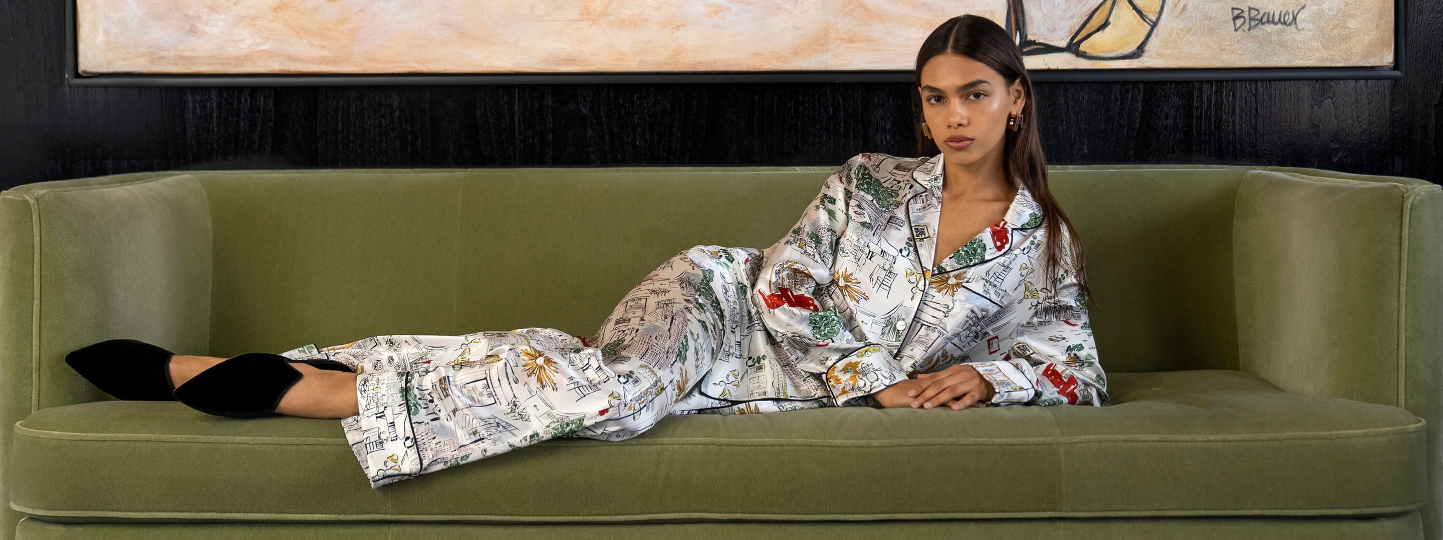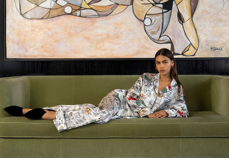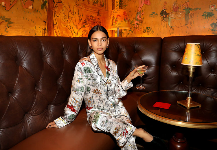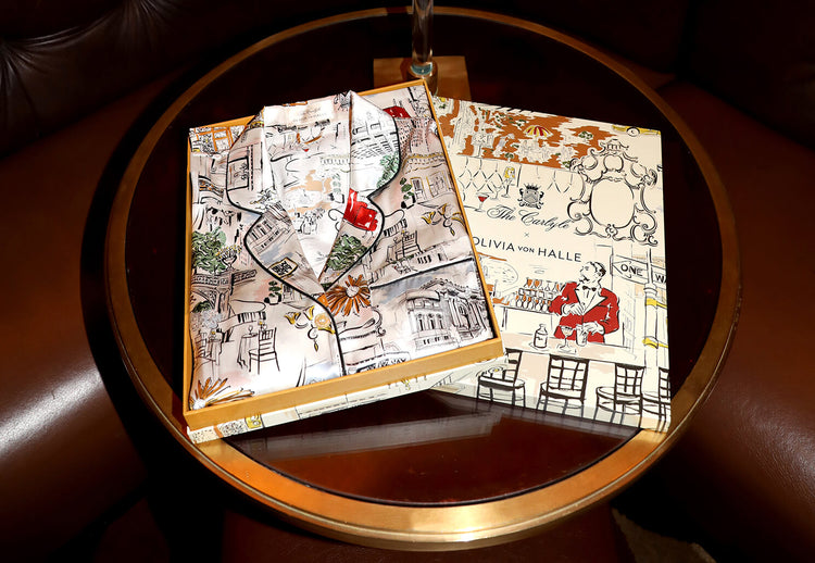 Olivia von Halle has partnered with The Carlyle, A Rosewood Hotel—an iconic cultural landmark on New York City’s Upper East Side—to create a limited edition cocktail pyjama and eye mask that pays homage to the hotel and the city that never sleeps.